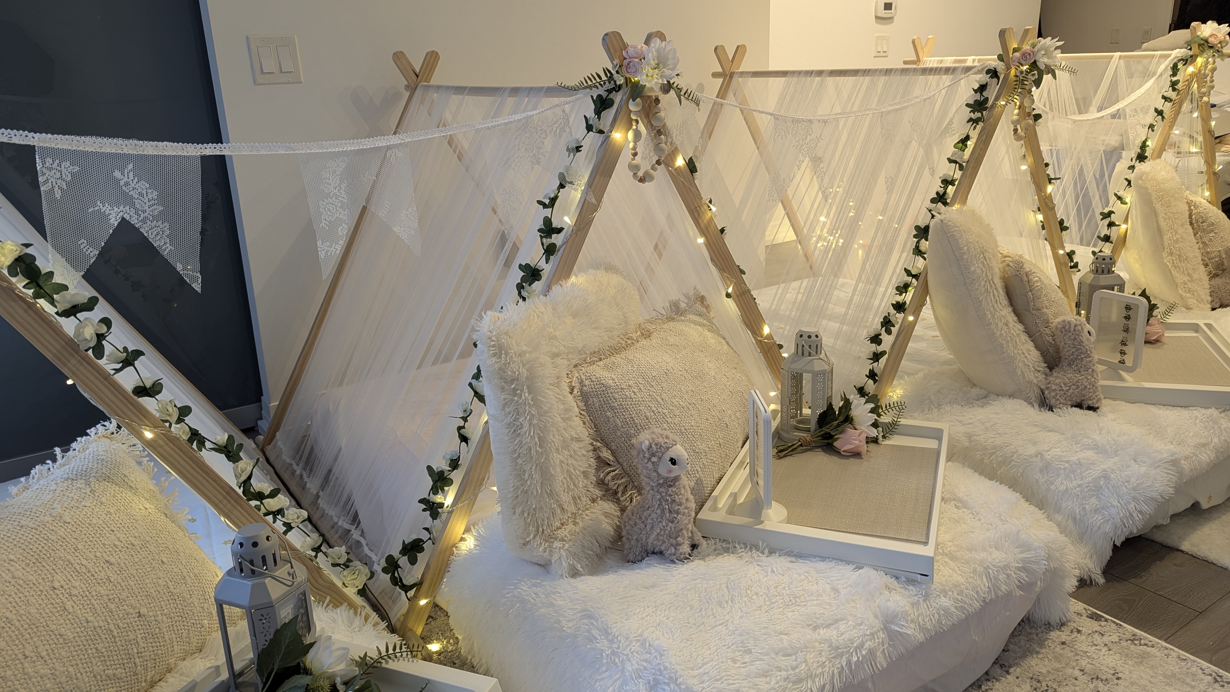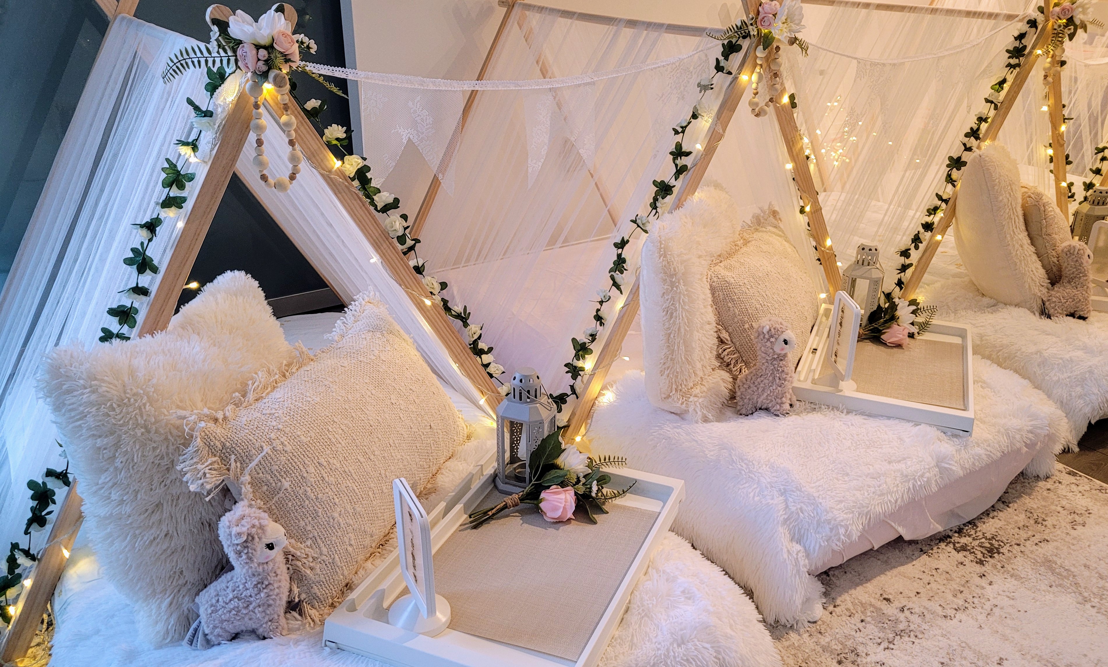 The Magic Arrives: Our team will transform your space into a dreamy sleepover wonderland.